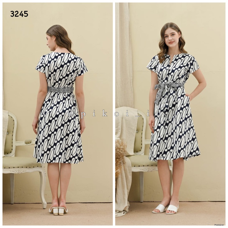 Dress Batik Wanita Modern Lengan Pendek Busui Friendly Dress Ikat Tali Batik Kantor 3245 303
