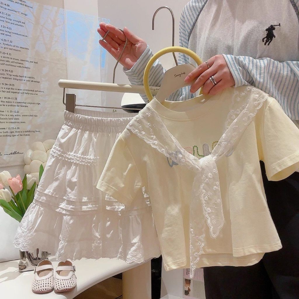 Kaos Lengan Pendek Anak Perempuan Kaos Renda Selendang Manis Dan Serbaguna Lengan Pendek
