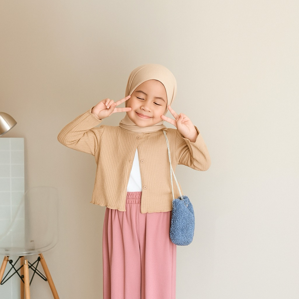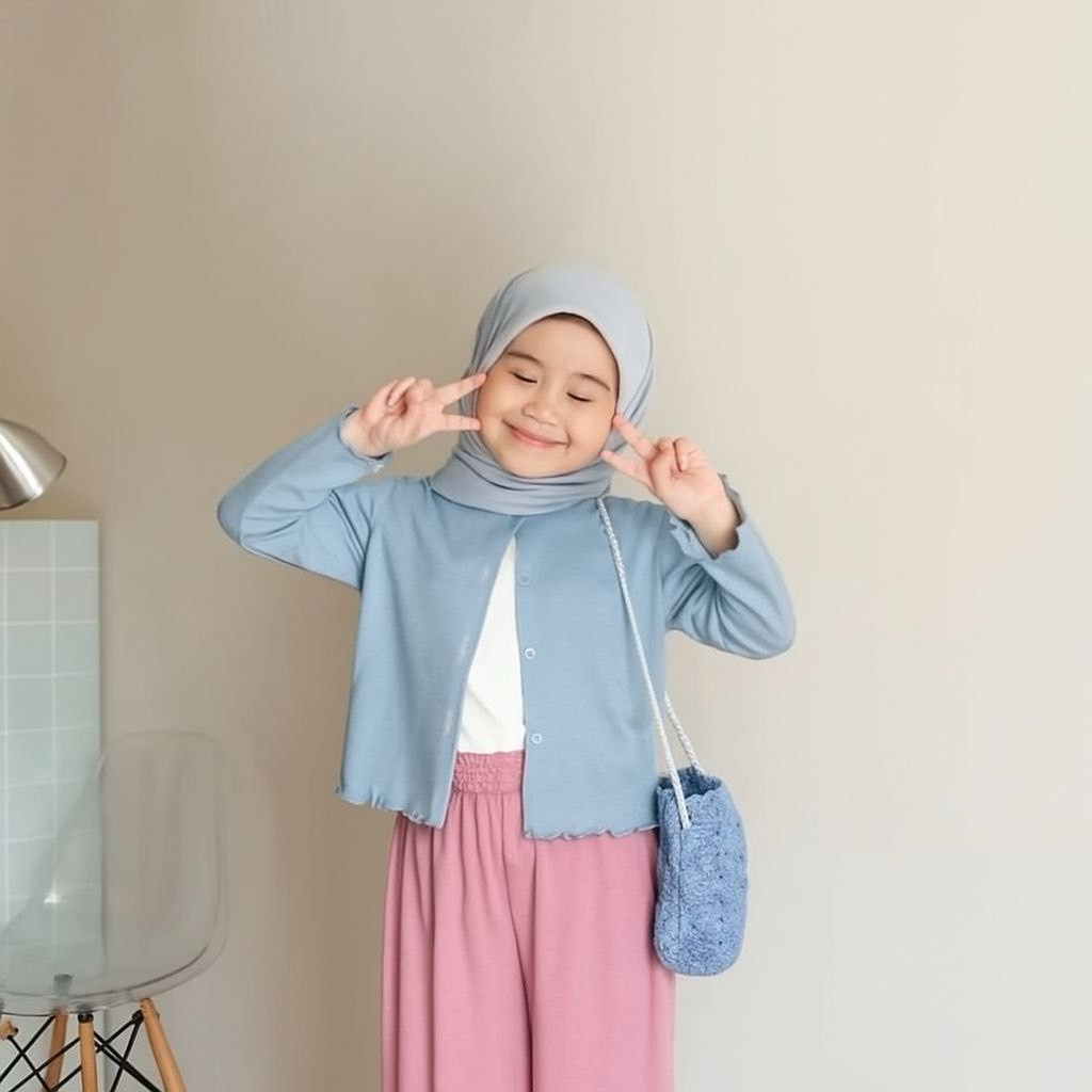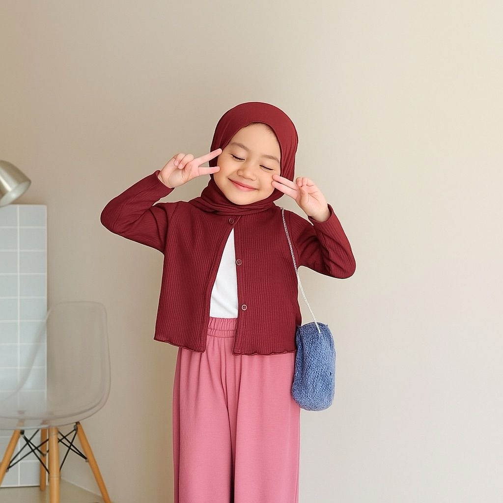 Cardigan Anak Perempuan Usia 2 Sampai 12 Tahun Bahan Rajut Waffle Knit