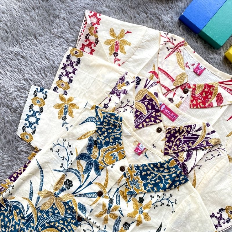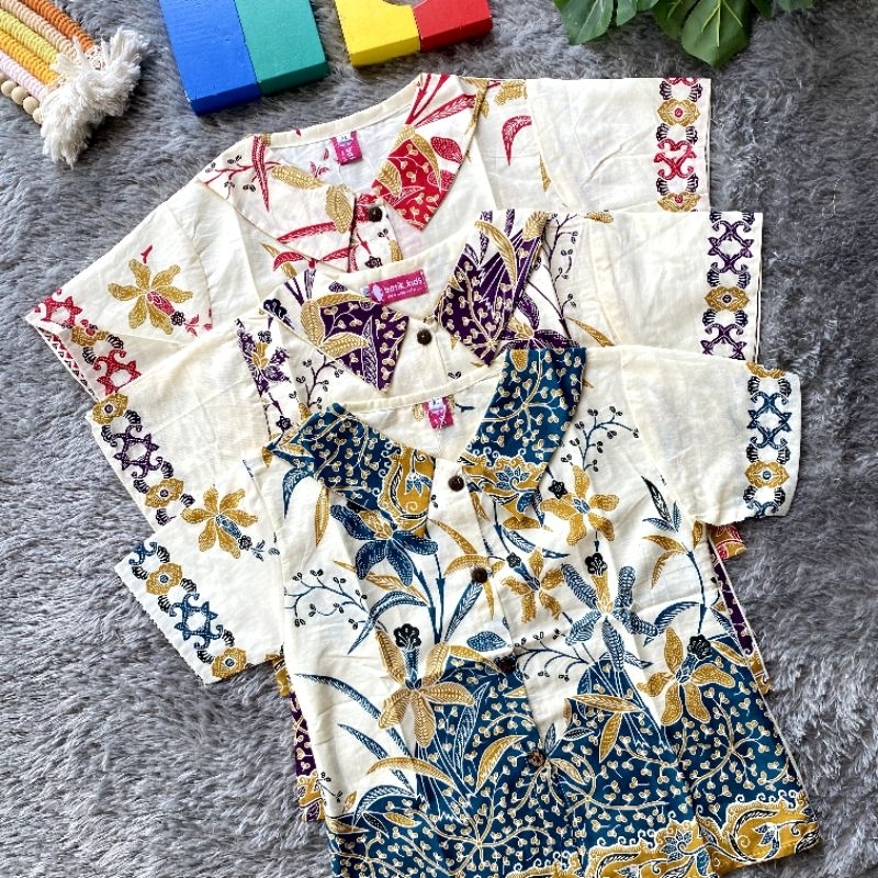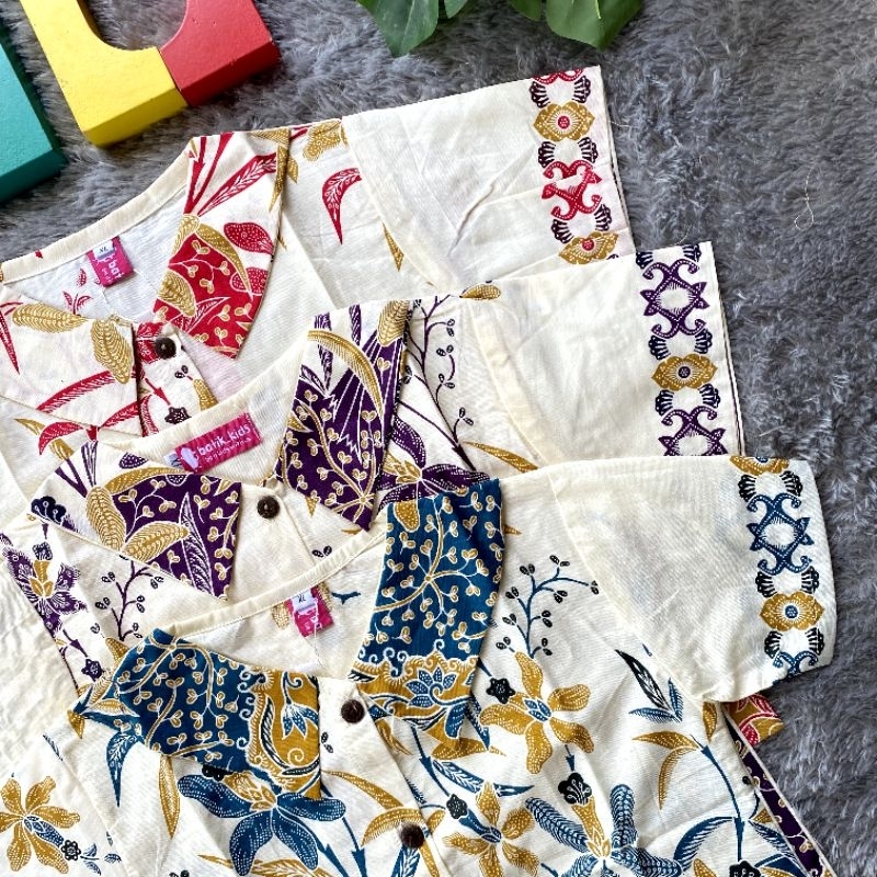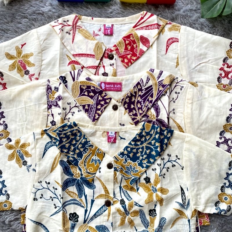 Esther Blus Top Batik Anak White Clara Atasan Anak Perempuan Seri Merah Hijau Biru Abu Un9U Atasan Batik Anak
