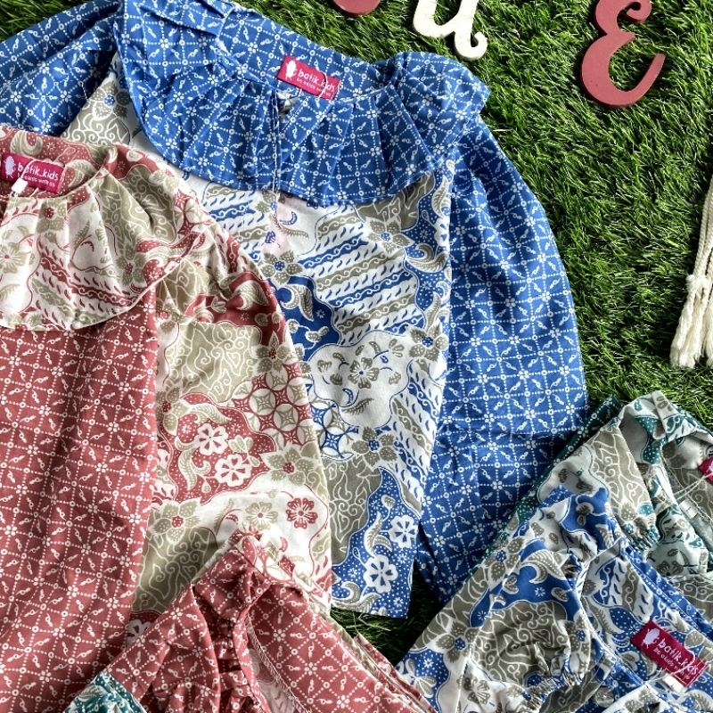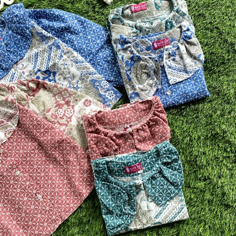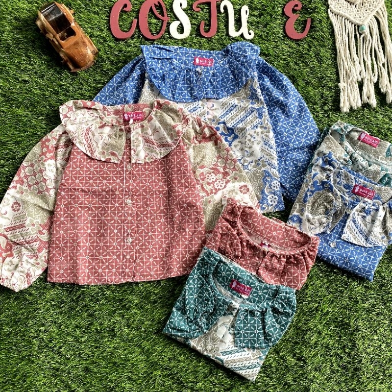 Batik Costume Blus Batik Anak Sherin Lengan Panjang Berkerah Biru Pink Toska Bahan Katun Nyaman Di Pakai