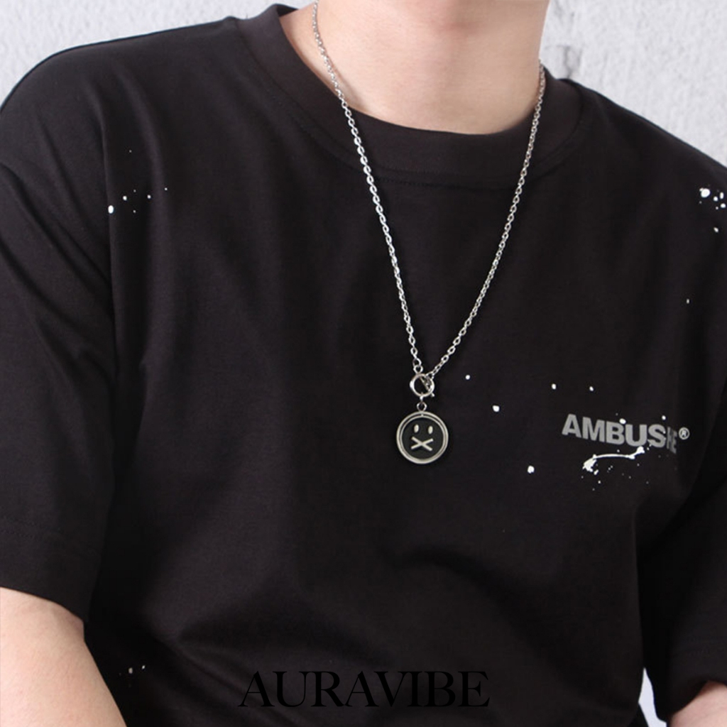 AURAVIBE Kalung baja titanium pria Kecenderungan Serbaguna Kalung sederhana Eropa dan Amerika