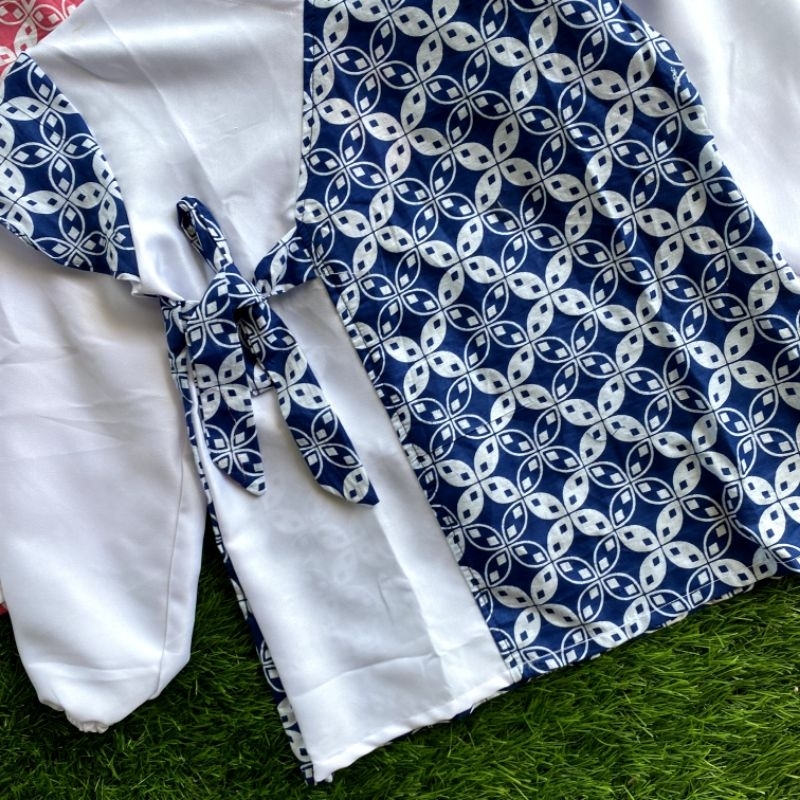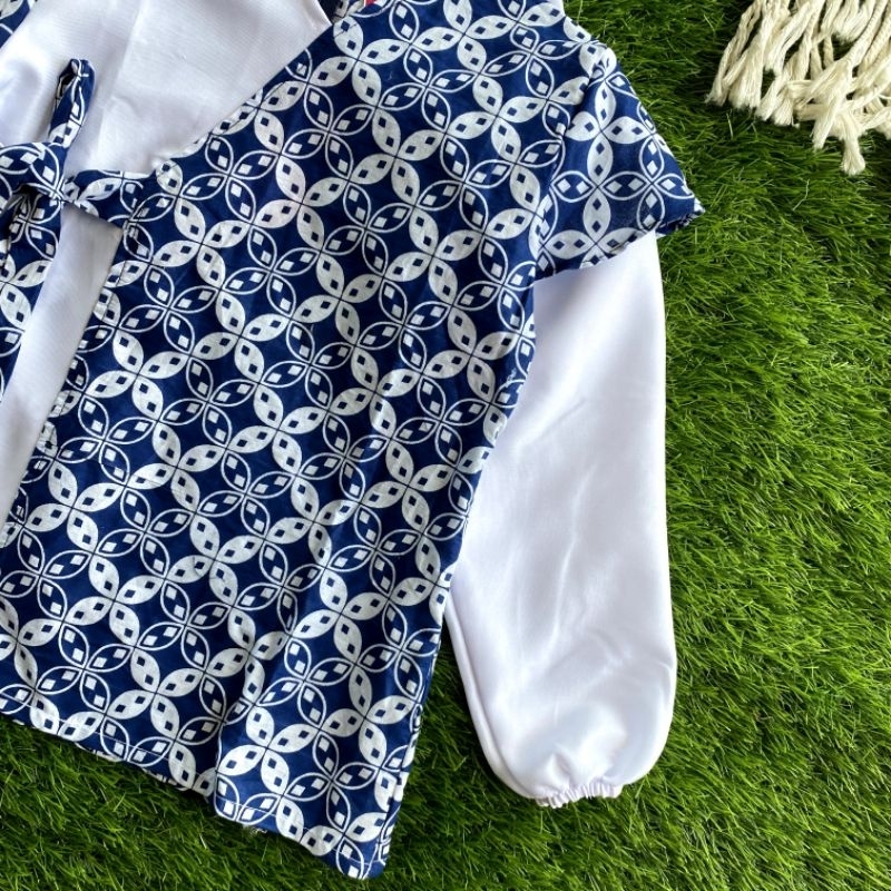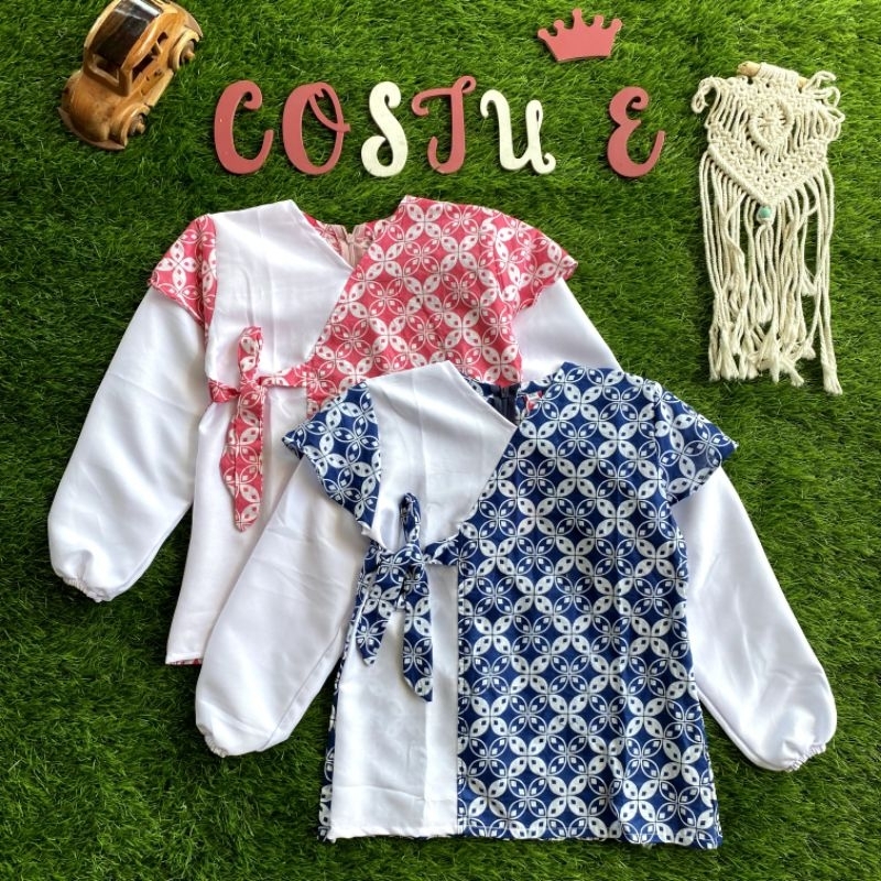Batik Costume Blus Lengan Panjang Kawung Mix Putih Cocok Untuk Anak