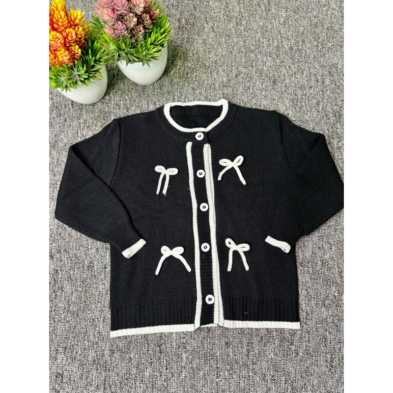 Keiko Cardigan Rajut Motif Pita Couple Anak 1-12 Dan Ibu All Size Perempuan Atasan Wanita Fashion Sweater Knitwear Korea