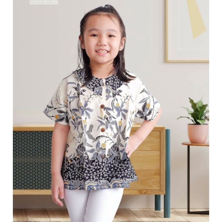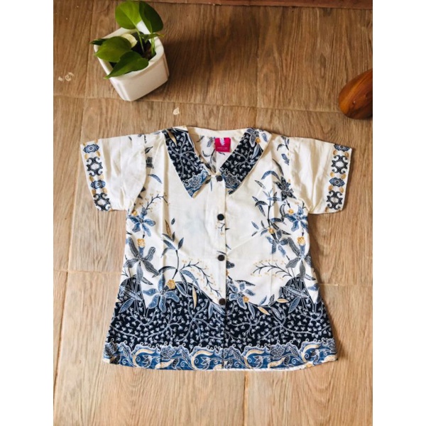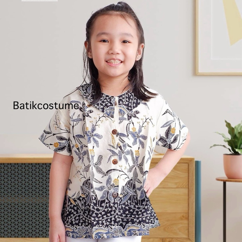 Batik Costume Blus Batik Anak Perempuan Clara Putih Atasan Berkerah Anak Perempuan Top Batik White Clara Bahan Katun Hal