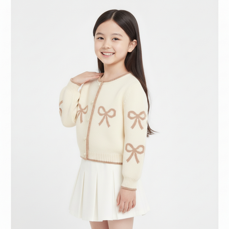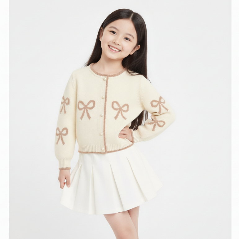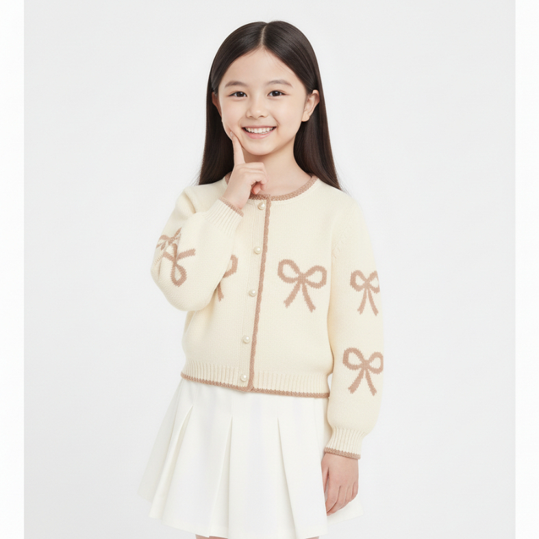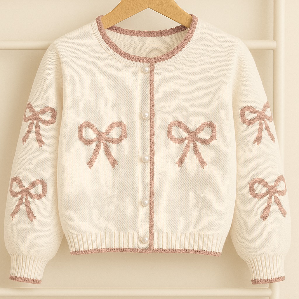Cardigan Rajut Anak Perempuan Bahan Rajut Pollycotton – Motif Pita Cantik Shinly Cardy Umur 1-6 Tahun