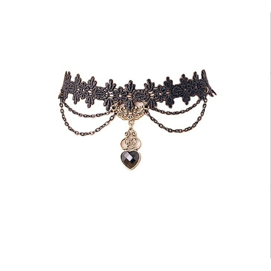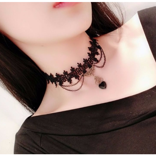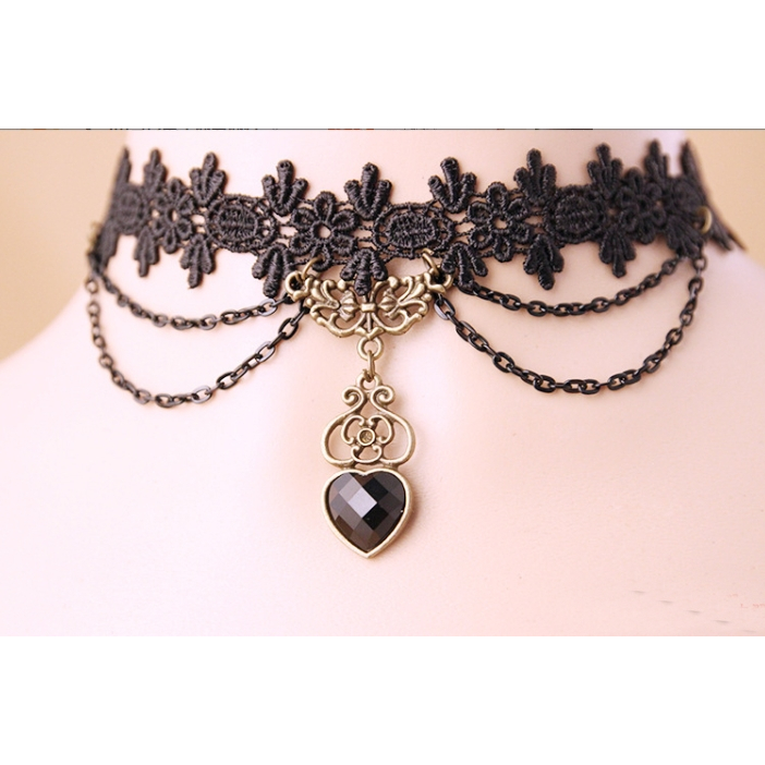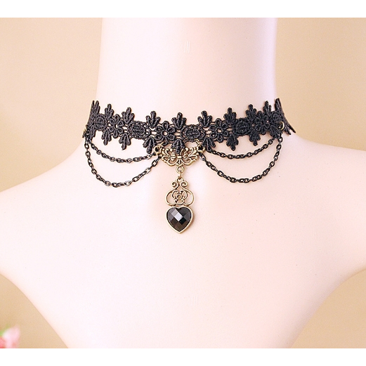 Kalung Choker liontin Lover Gothic Velvet Heart Crystal bandung