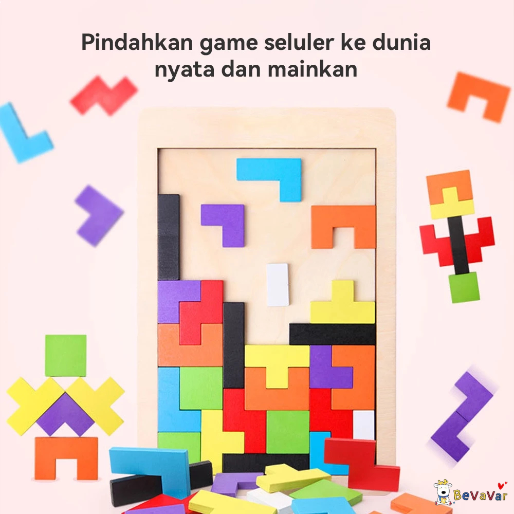 DP 0 BEVAVAR Mainan Edukasi Anak Puzzle Tetris Russian Block ToyPuzzle Kayu