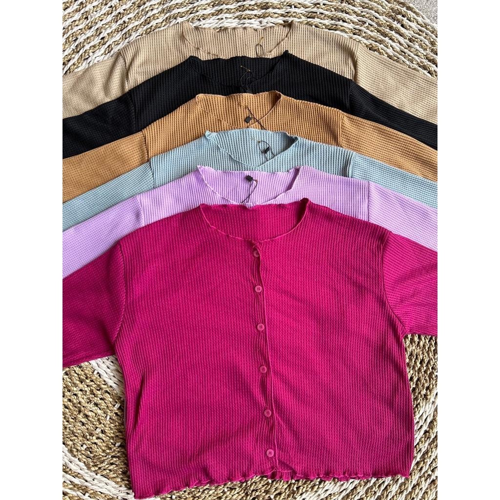 Cardigan Anak Perempuan 12 Tahun Bahan Wafer Knit Korean Style Crop Top Anak