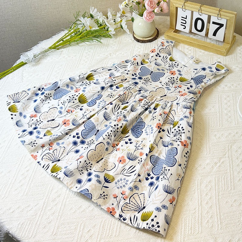 Dress Anak Perempuan Gaun Putri Motifkupu-Kupu Berbahan Katun Murni Rok Anak Alakorea Musim Panas 1-6 Tahun