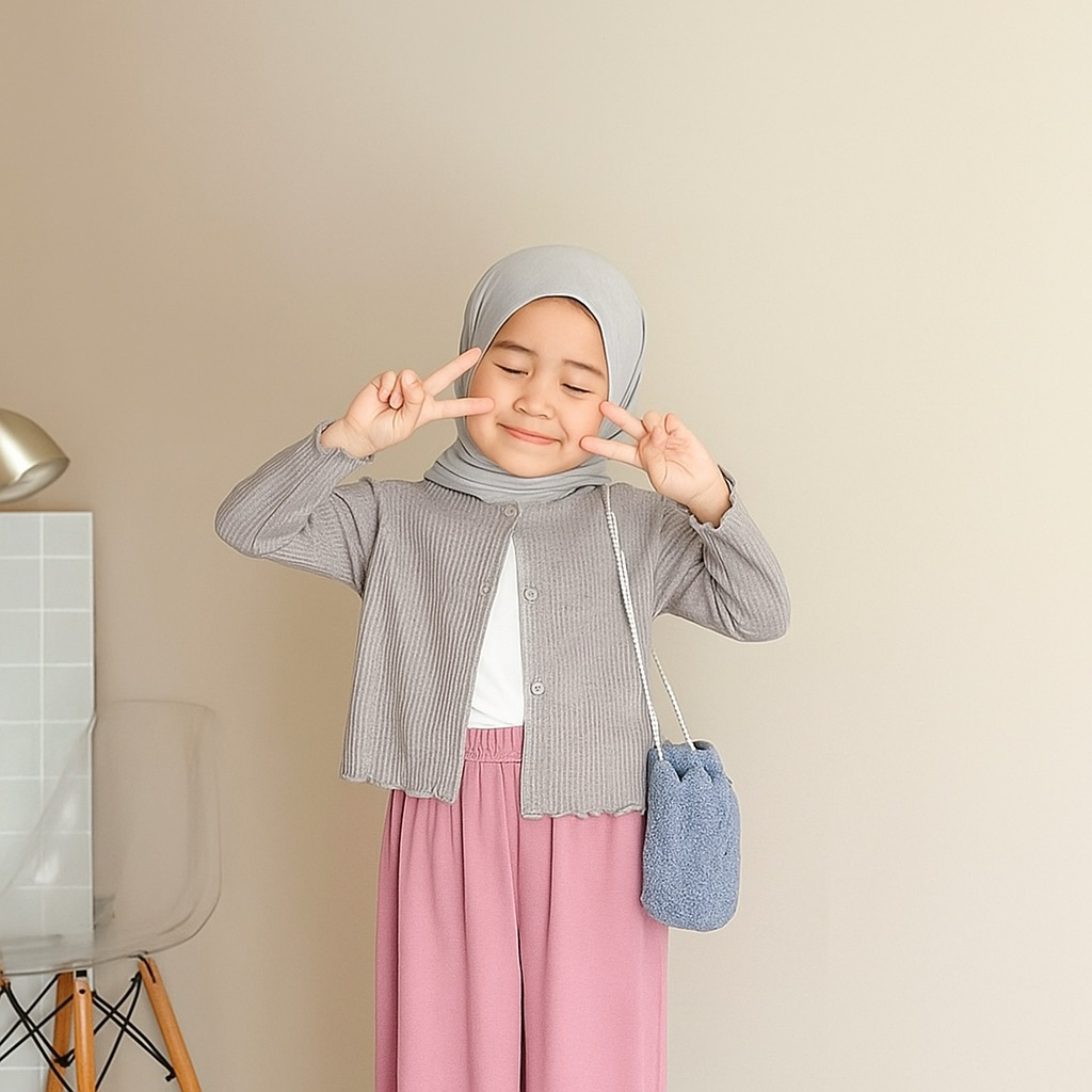 Cardigan Anak Perempuan Usia 2 Sampai 12 Tahun Bahan Rajut Waffle Knit