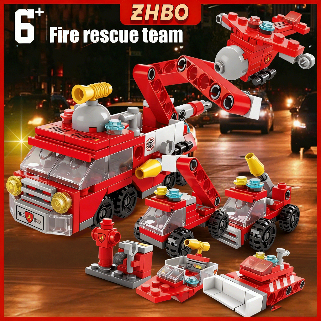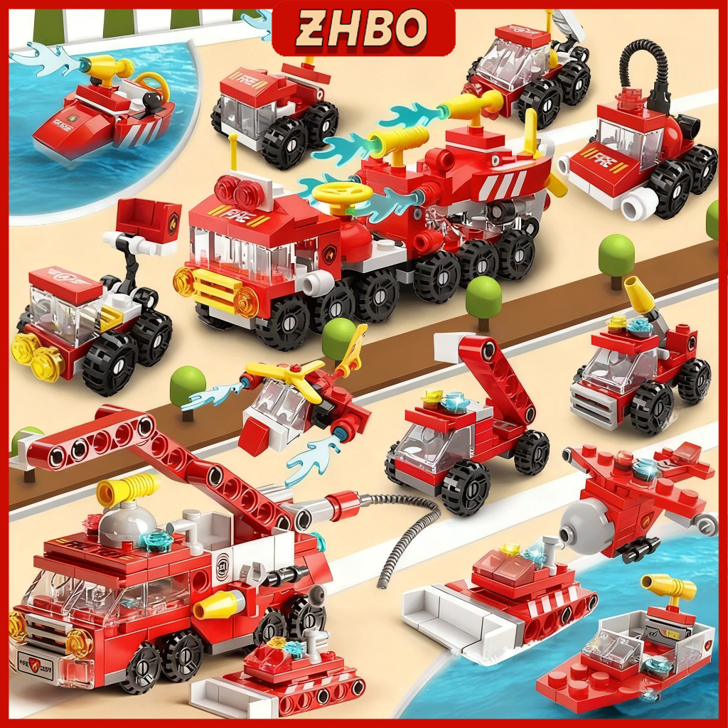 DP 0 ZHBO Mainan Balok Polisi FireTruck mobil Block 3D Puzzle Susun Edukasi Mainan Anak Lakilaki 5678 tahun