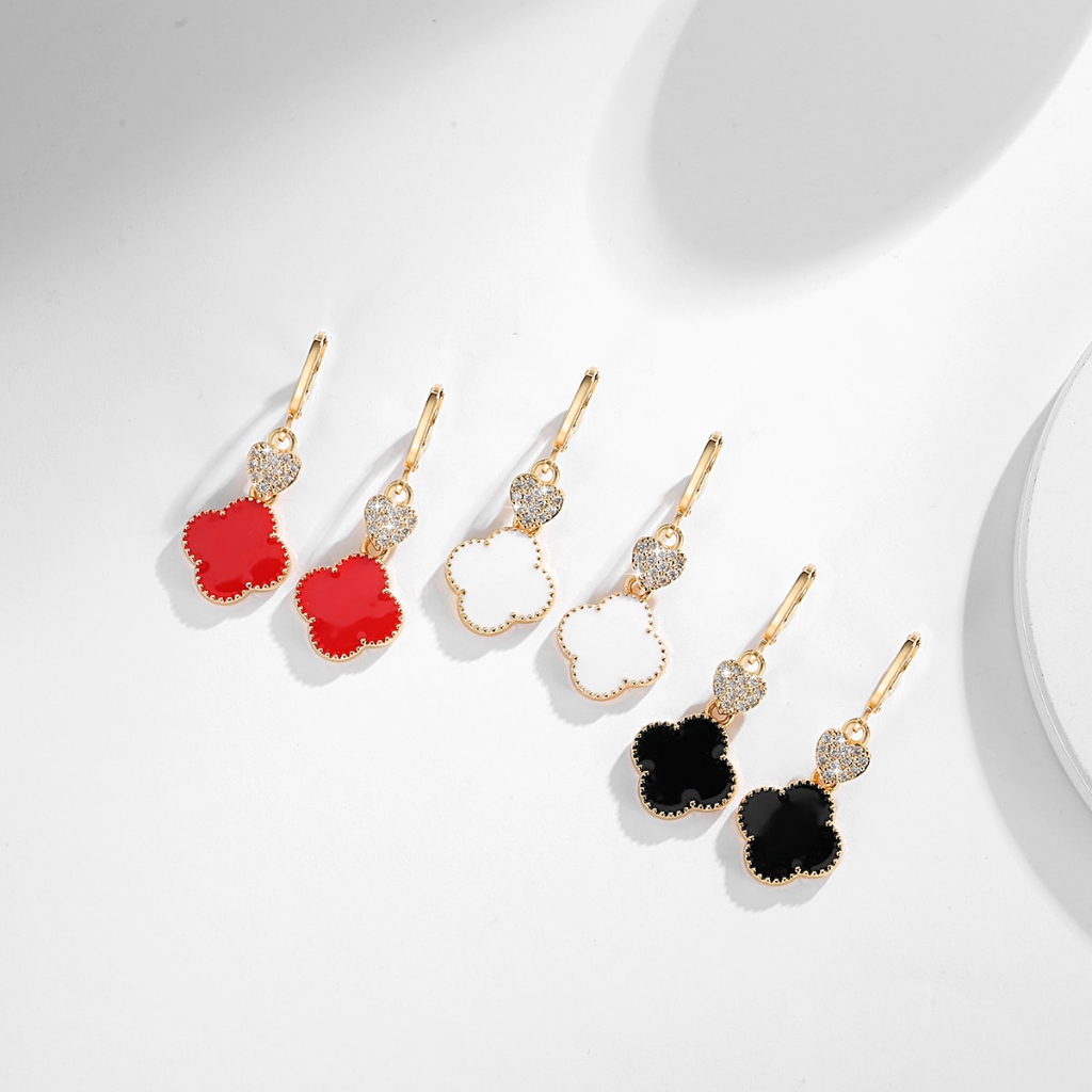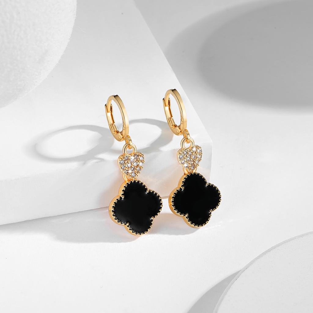 Lanmi Jewelry Anting-Anting Berlapis 3M45 Berbentuk Hati Cinta Kristal Empat Daun Semanggi, Baja Tahan Karat Anti-Luntur