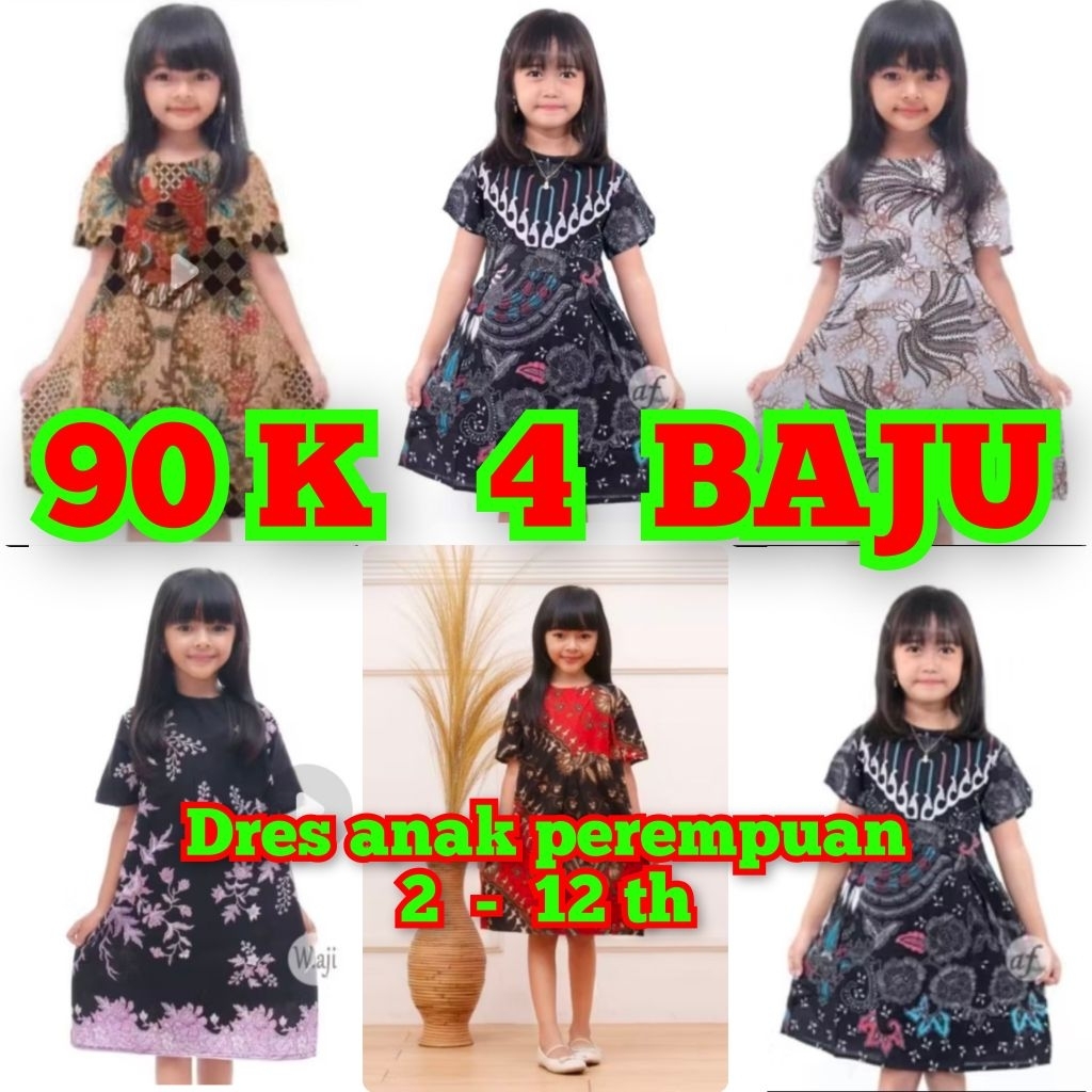 Dress 90K 4 Baju Dres Anak Perempuan Batik 2-11Th Dres Anak Kekinian