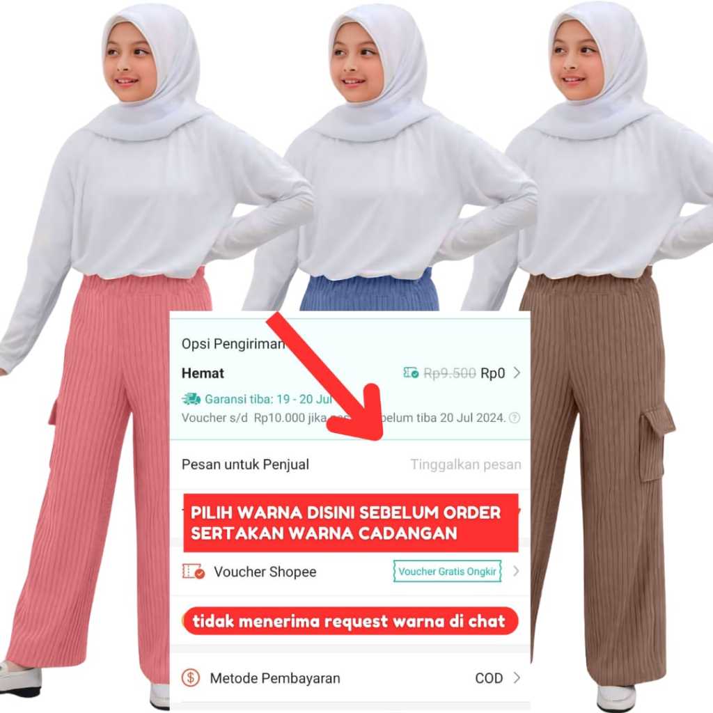 60 Ribu Dapat 3 Pcs Kulot Knit Cargo Anak Perempuan Tanggung Usia 2-15 Tahun