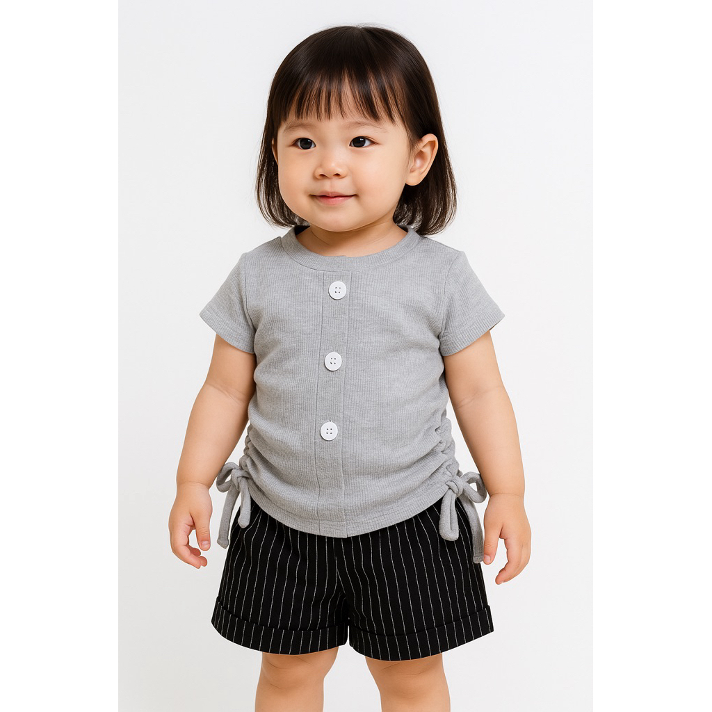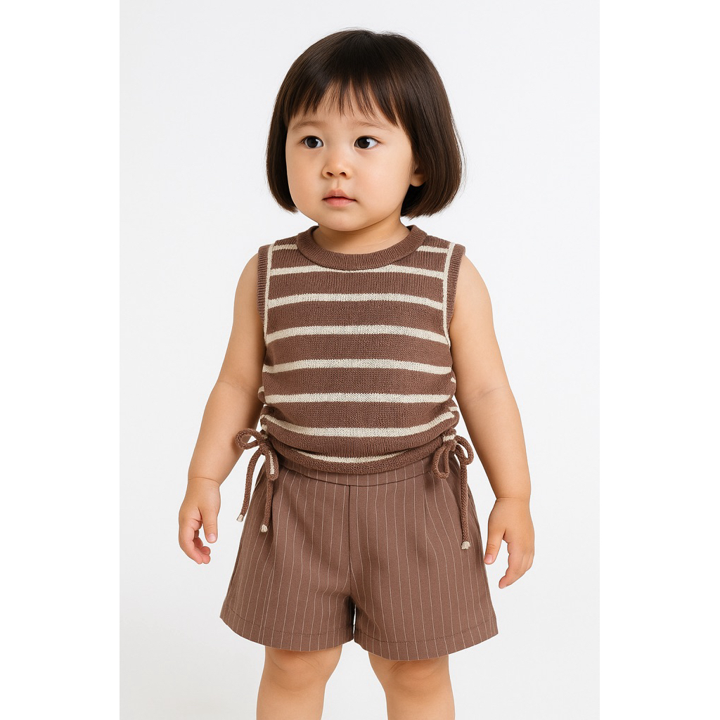 Celana Pendek Anak Cewek Stripes Bahan Semiwol Gaya Korea 1-6 Tahun