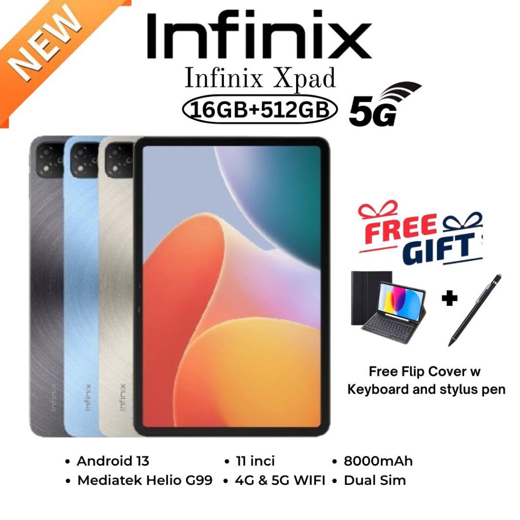 Hot Sales New Arrival Asli Infinix Xpad Tablet 4G Lte Sim + Wifi 16Gb Ram + 512Gb Rom | Mediatek Helio G99 | Android 13