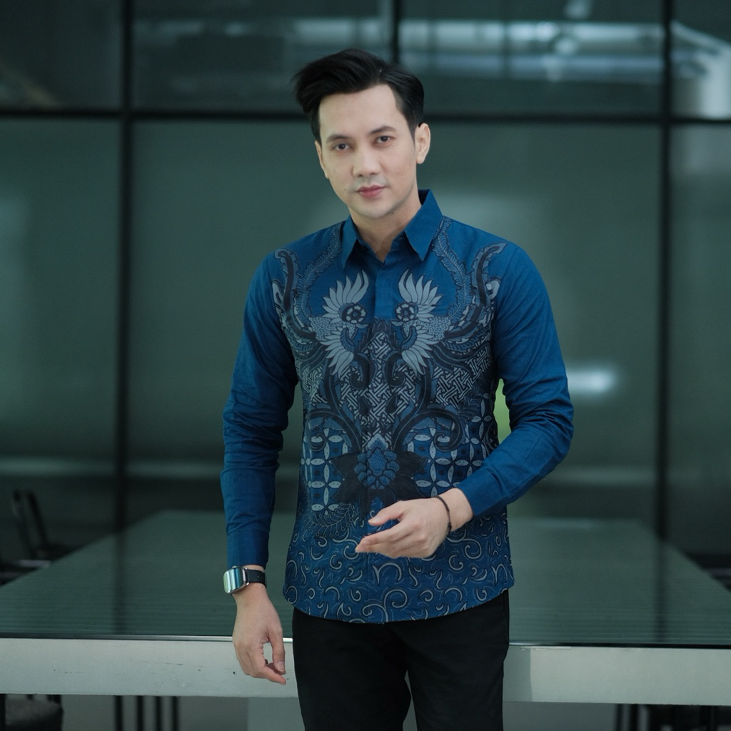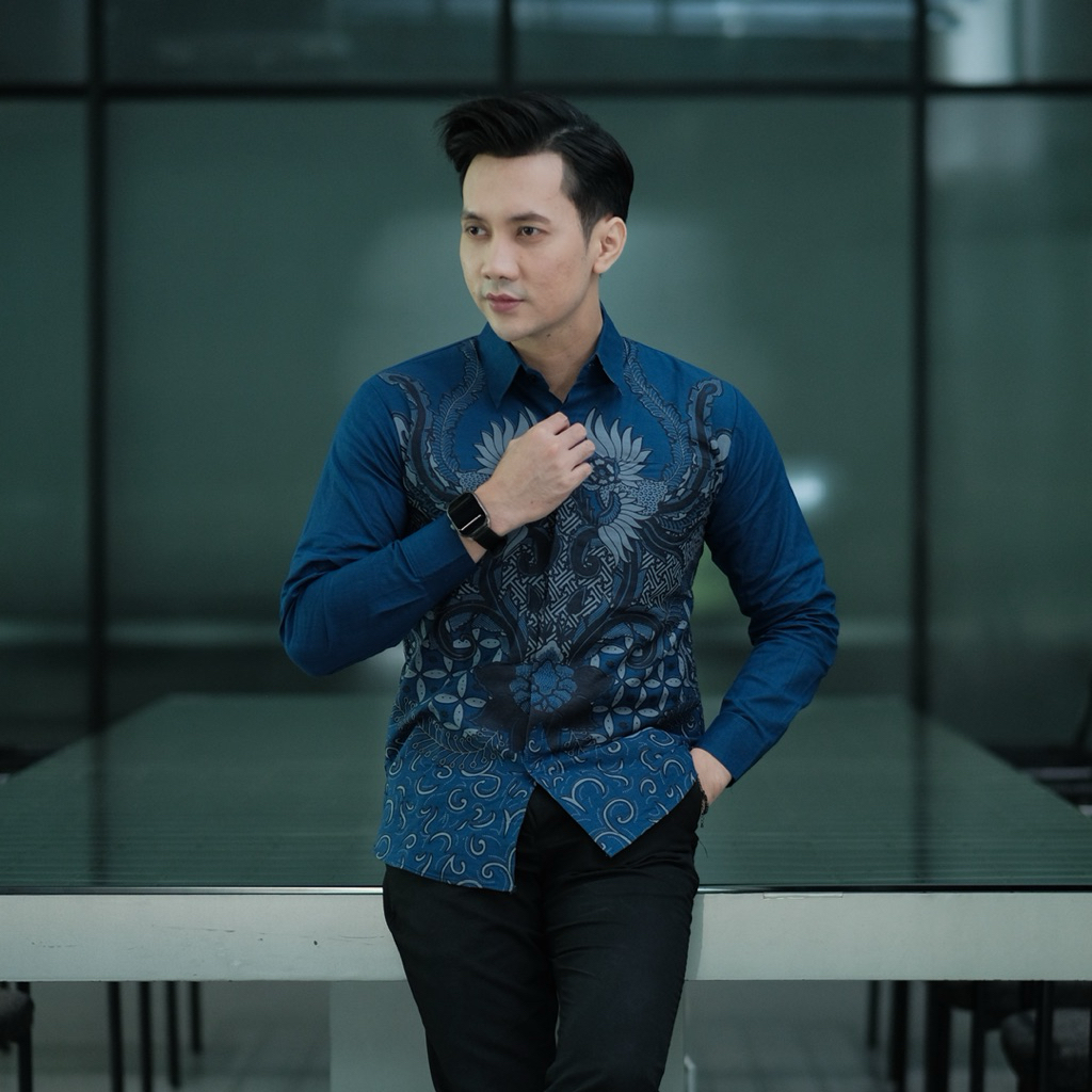 Niskala Biru Navy Kemeja Batik Pria Lengan Panjang Furing Full Katun Slimfit