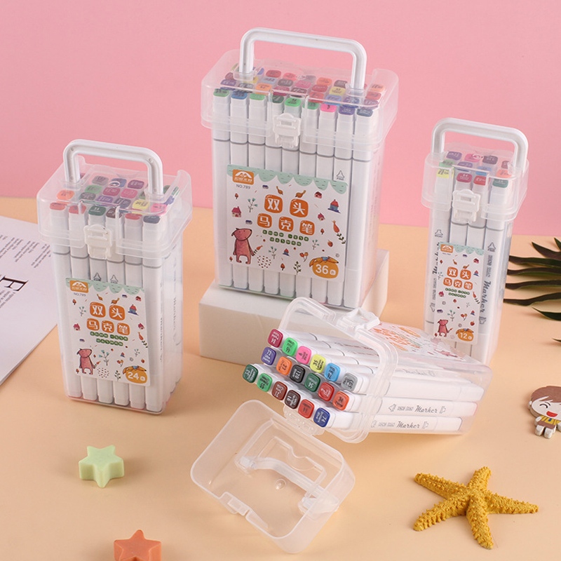 Spidol Set 12-48 Warna Sketch Marker Spidol Warna 2in1 Minyak Ujung Ganda Set Lengkap Spidol Pensil Cat Air Set Warna