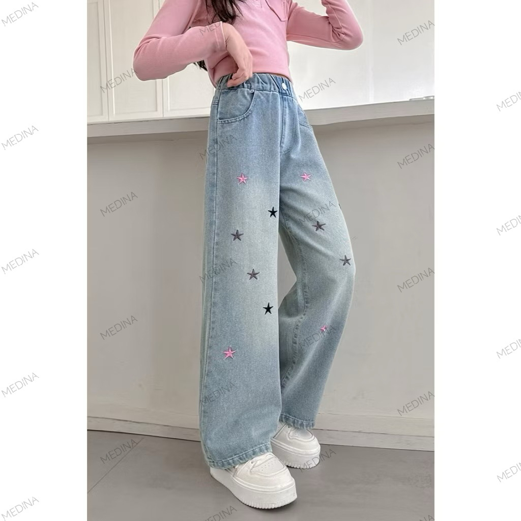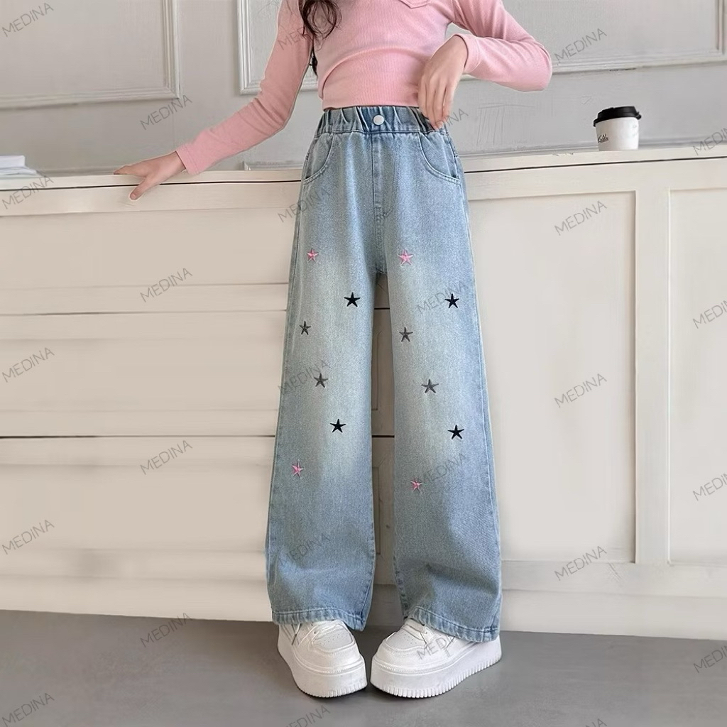 Celana Kulot Jeans Anak Usia 6-13 Tahun Bordir Bintang Kekinian Korean Style