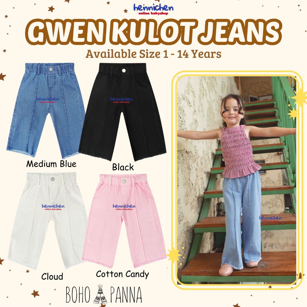 Bohopanna 1-14 Tahun Gwen Kulot Jeans Celana Panjang Loose Denim Fashion Anak Perempuan