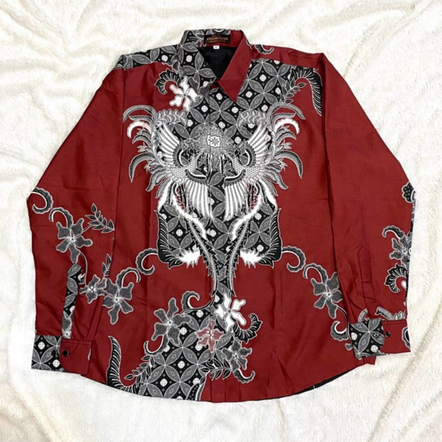 Kemeja Anak Slimfit Merah Maroon Motif Batik Lengan Panjang Pria Lapis Furing Dalam