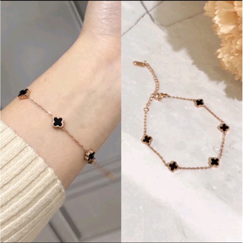 Gelang Titanium Wanita Korea Gelang Tangan Clover Kecil Anti Karat Tidak Luntur