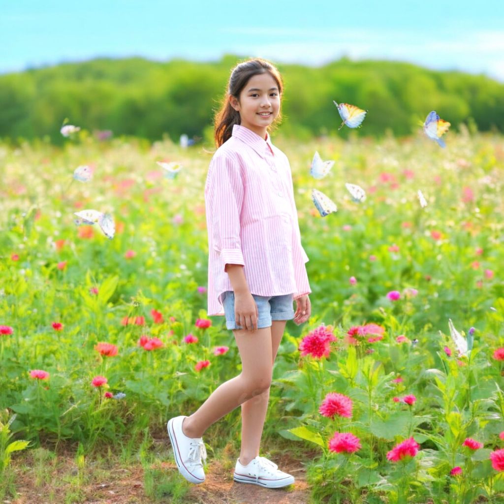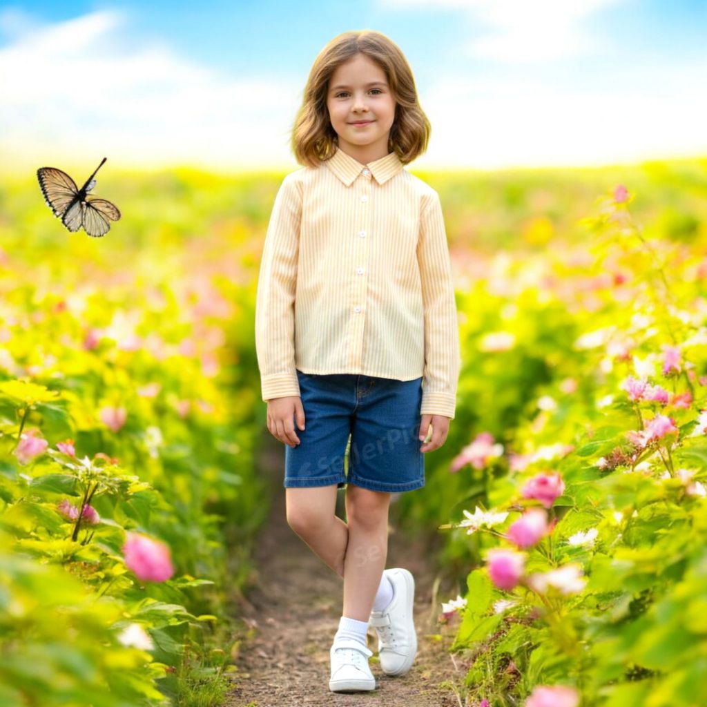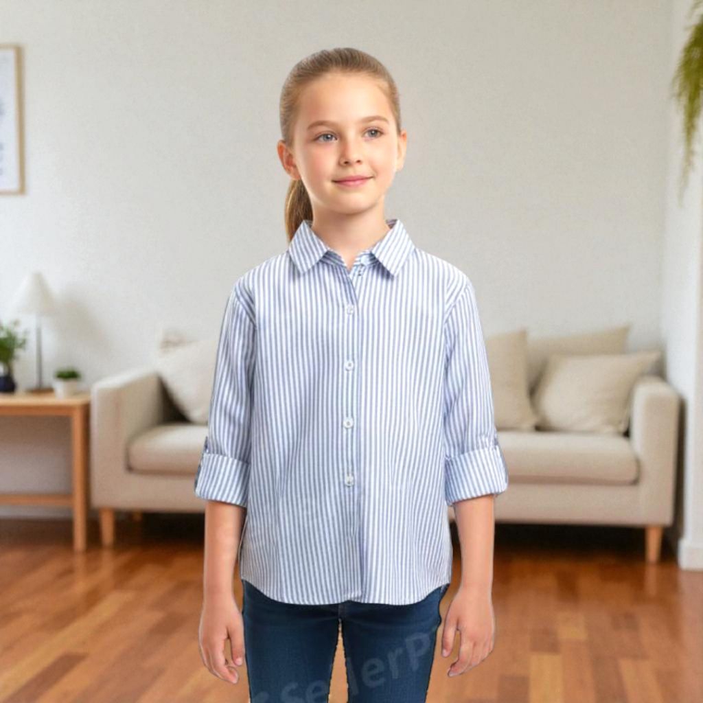 Kemeja Anak Perempuan Lengan Panjang 1-12 Tahun Baju Kemaja Anak Motif Garis Style Korean Oversize