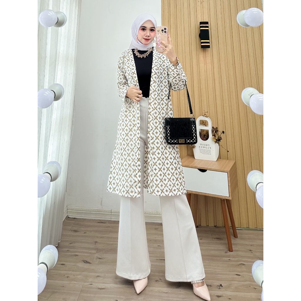 Long Cardi Batik Motif Modern Kekinian Simple Fashion Long Cardi Outer Depan Outerwear Cardigan