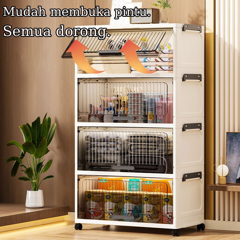 Lemari Plastik Lipat Tutup Flip/Lemari Plastik Lipat Susun/Rak Buku Serbaguna Estetik ada Roda