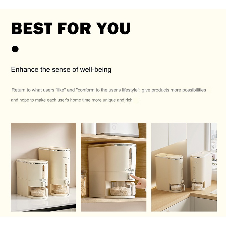 Kitakata Komebitsu Uforu Dispenser Beras 5 Kg Dan 10 Kg Food Grade Seal Rice Bucket Anti Kutu Tempat Wadah Penyimpanan B