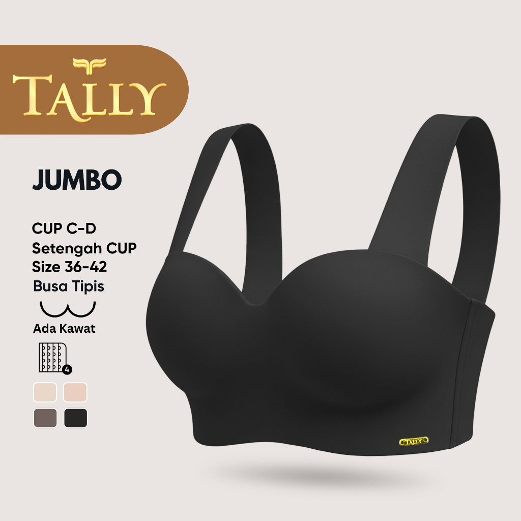 TALLY Bra Ada Kawat Busa Tipis Bahan Nilon Seamless CUP C - D Kait 4 Bra JUMBO Setengah Cup BH 1296 Sarwendah Murah Grat