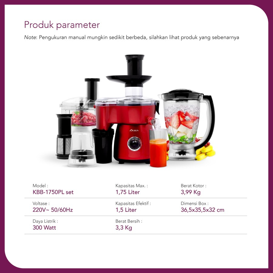 Kirin Blender Juicer Chopper Set Kbb-1750Pl-Set