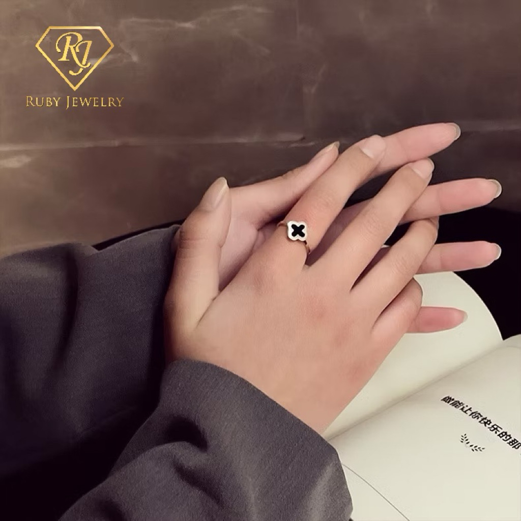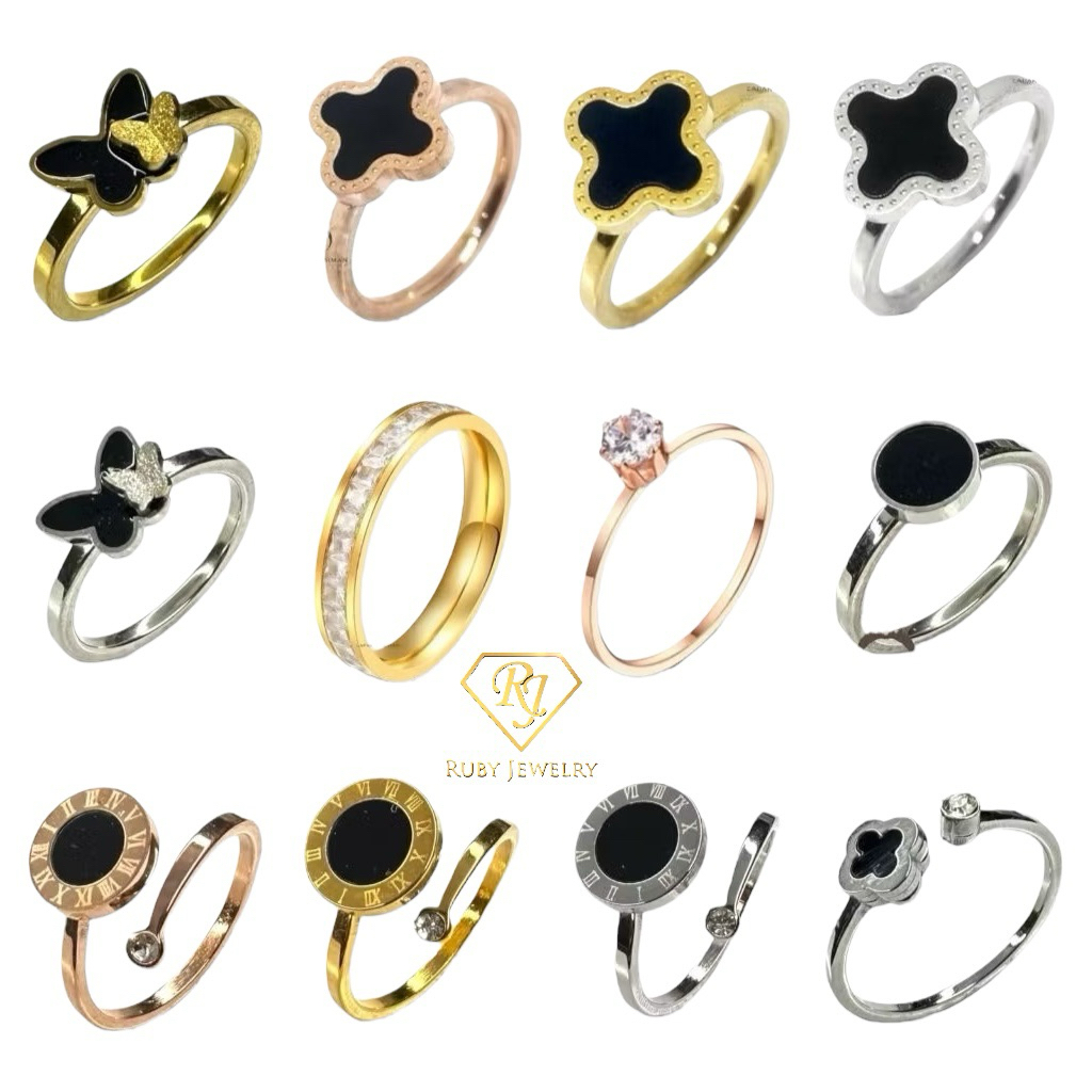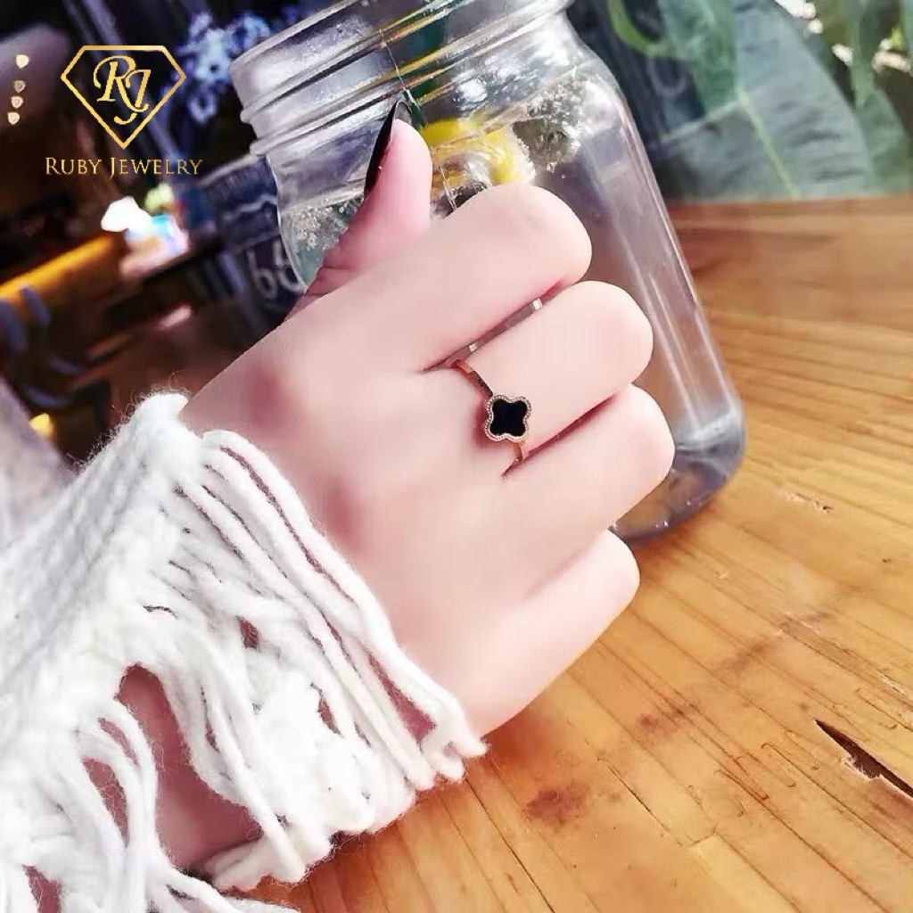 Cincin Titanium Wanita Clover Hitam Cincin Wanita Korea Terbaru Anti Karat Tidak Luntur