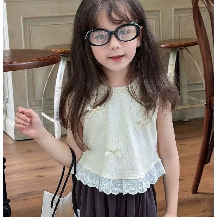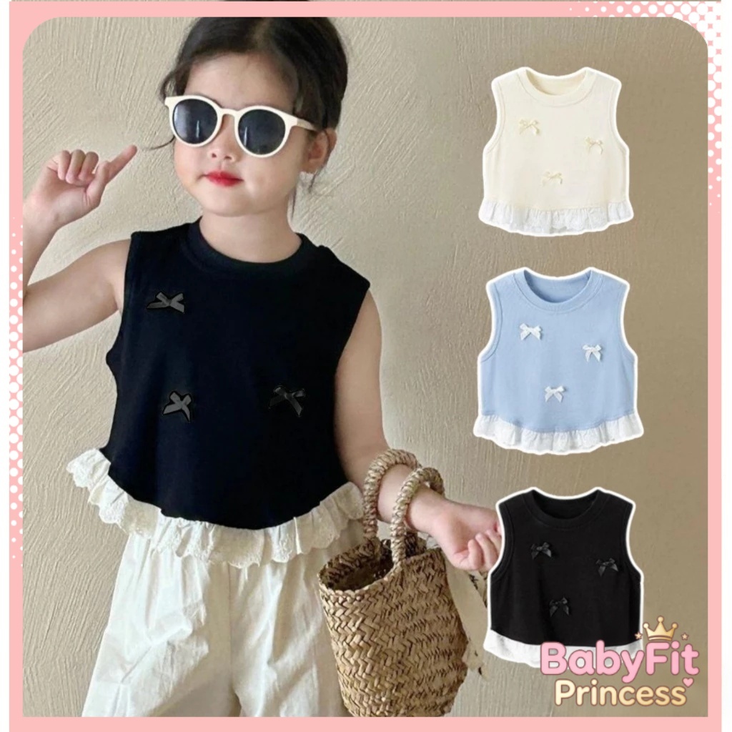 Kaos Anak Perempuan Lengan Pendek - Bahan Elastis Lembut Usia 6 Bulan-6 Tahun Desain Renda & Pita Nyaman Untuk Sehari-Ha
