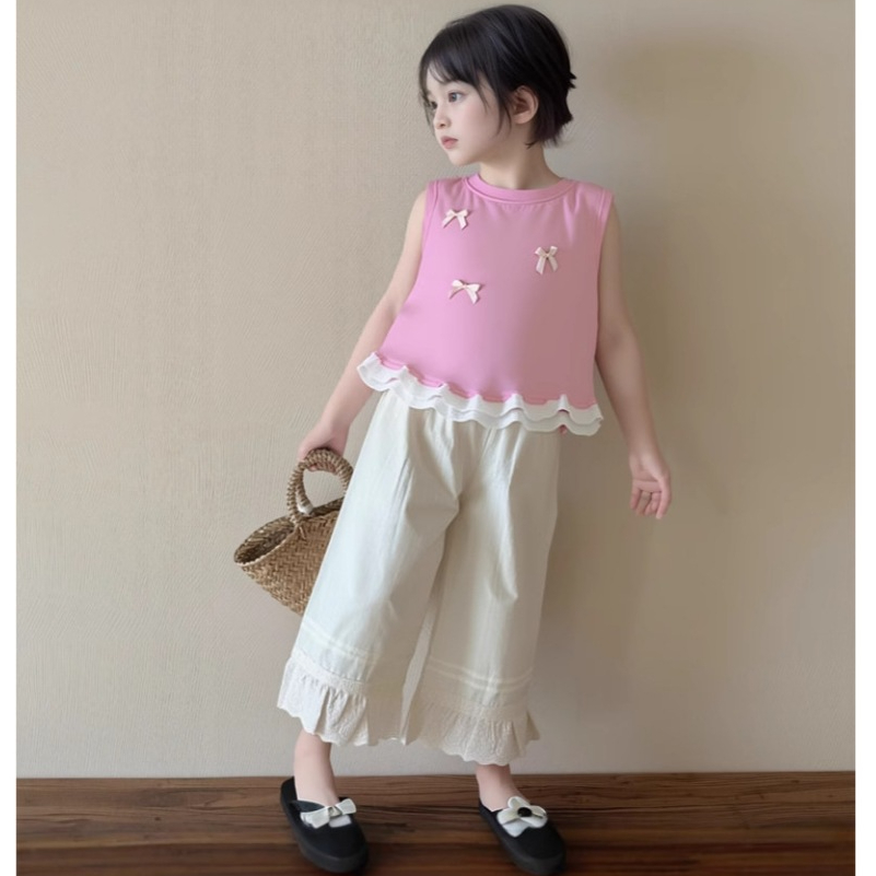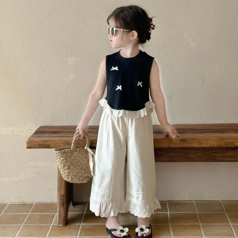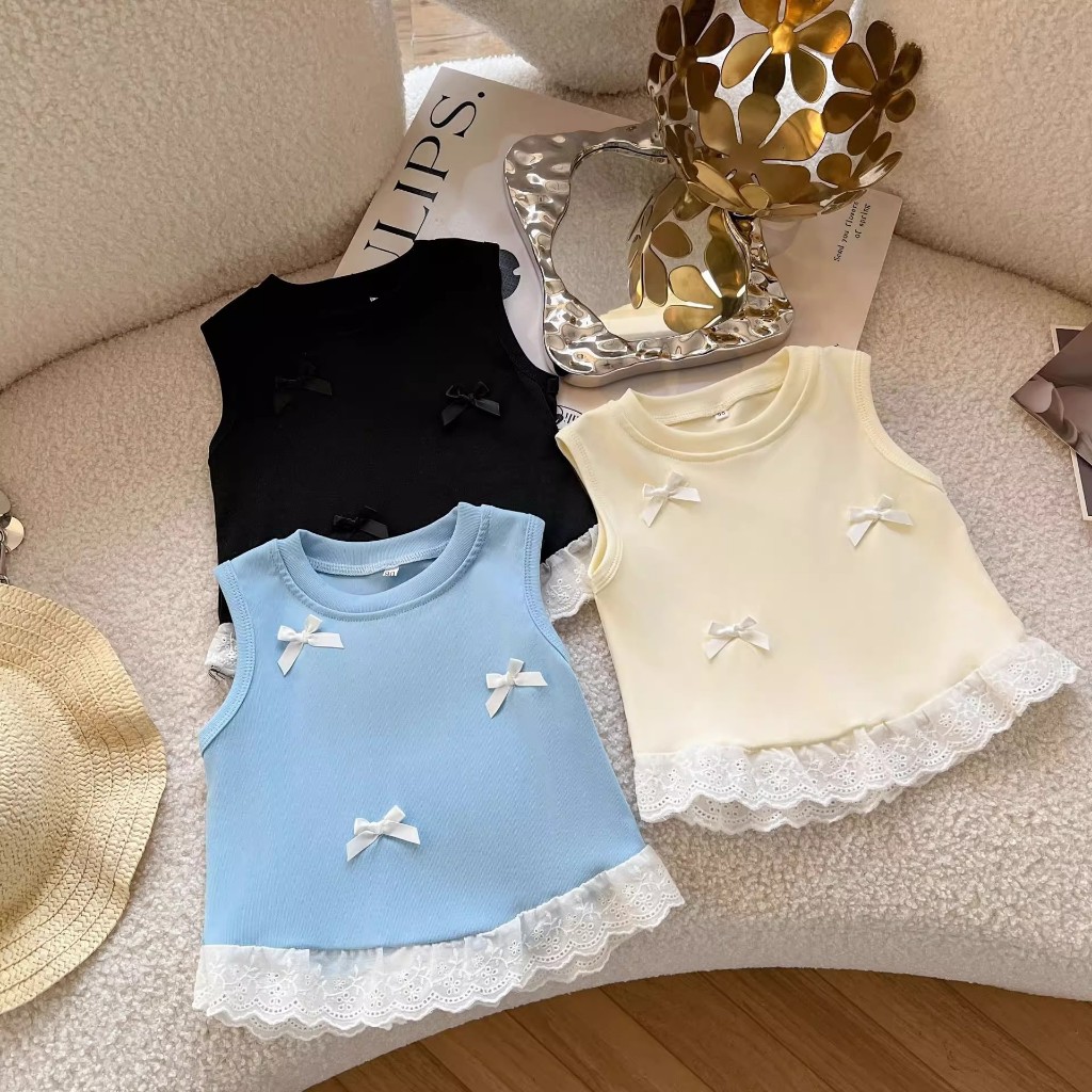 Bykiddos - Atasan Berlin Top Anak Perempuan Lengan Kutung Renda Atasan Anak Perempuan