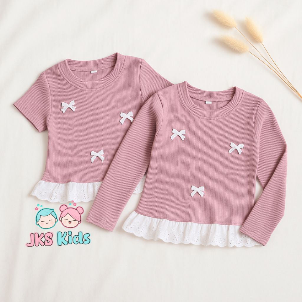 Jks Kids - Baju Knit Anak Perempuan Atasan Renda Lengan Panjangpendek Motif Pita