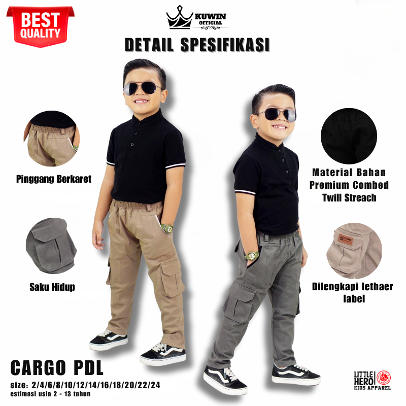 Celana Panjang Anak Little Hero Chino Panjang Cargo Pdl Anak Laki-Laki Estimasi 1-13 Tahun