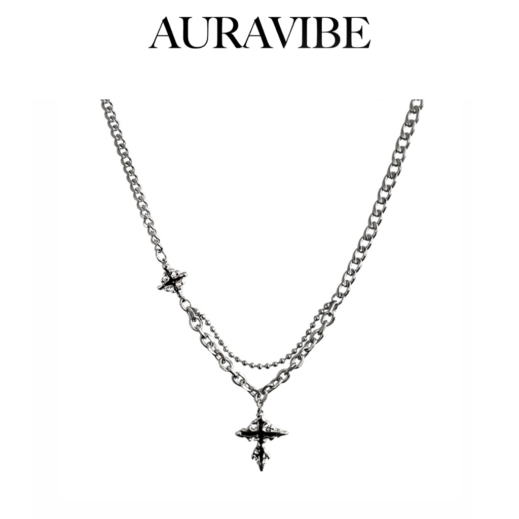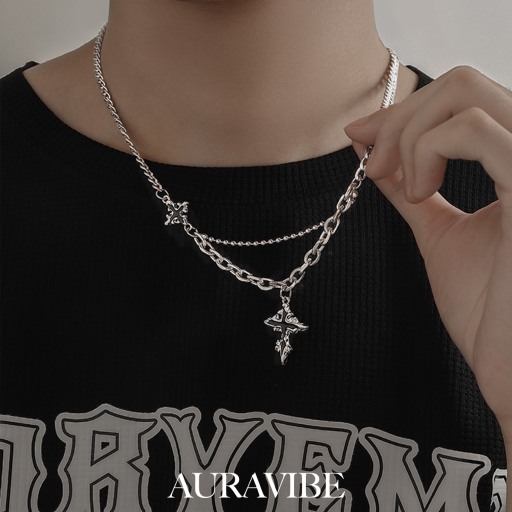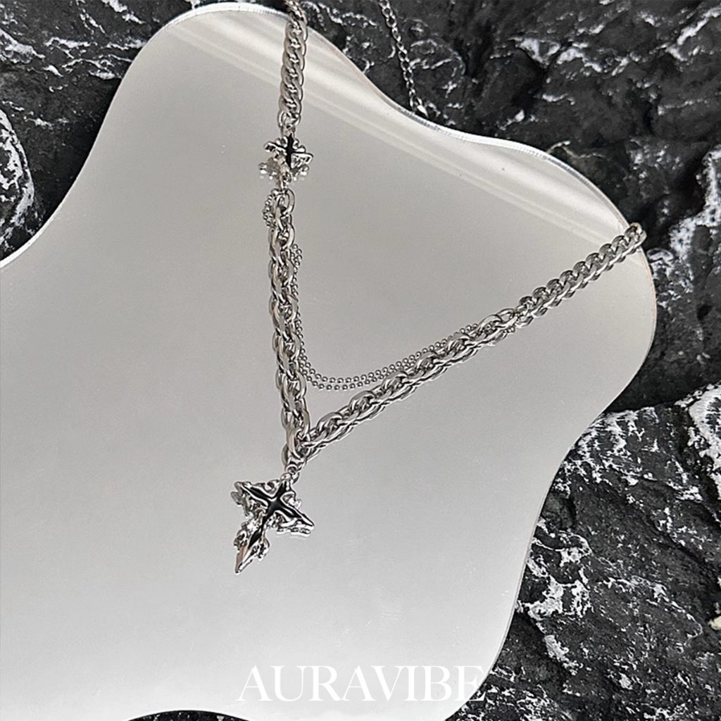 AURAVIBE kalung lapis ganda liontin silang Gaya gelap retro Perhiasan niche Perasaan kelas atas