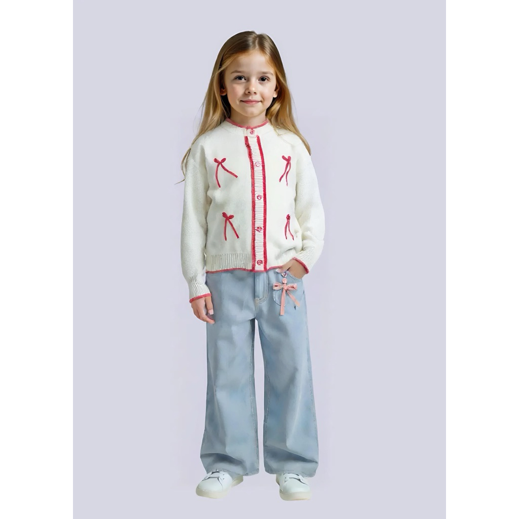 Cardigan Anak List Pita Sweater Rajut Atasan Anak Perempuan Usia 1-11 Tahun