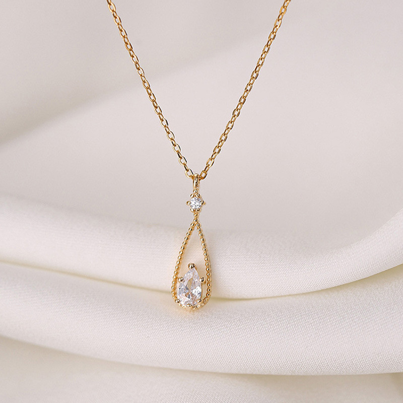 Sadyye Rantai Tulang Selangka Temperamen Sederhana untuk Wanita Kalung Zirkon Tetesan Air Fashion Prancis yang Indah