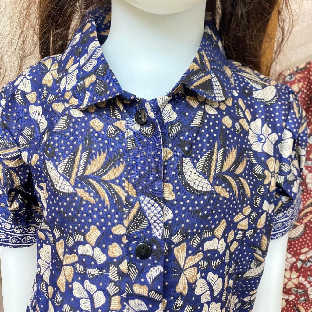 Banara Blus Batik Anak Pelita Lengan Pendek Berkerah Maron Navy Bahan Katun Nyaman Di Pakai