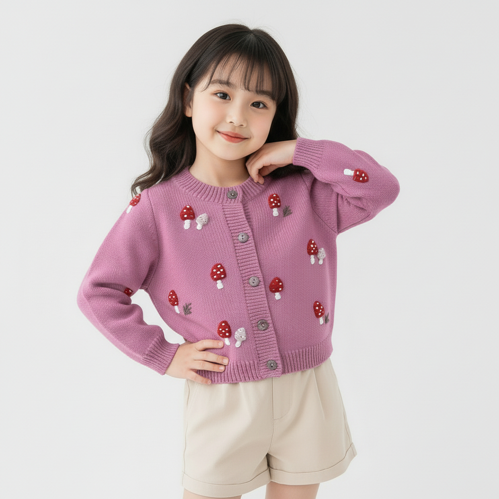 Cardigan Rajut Anak Perempuan Mushroom Baju Anak Cewek Cardy Premium Umur 1 - 2 - 3 - 4 - 5 Tahun