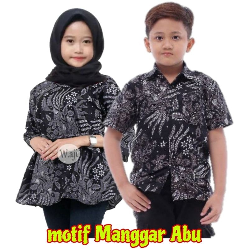 Batik Couple Anak Cewek Cowok - Couple Batik Anak Terbaru Blouse Batik Anak Dan Kemeja Batik Lengan Pendek Anak 2-10 Tah
