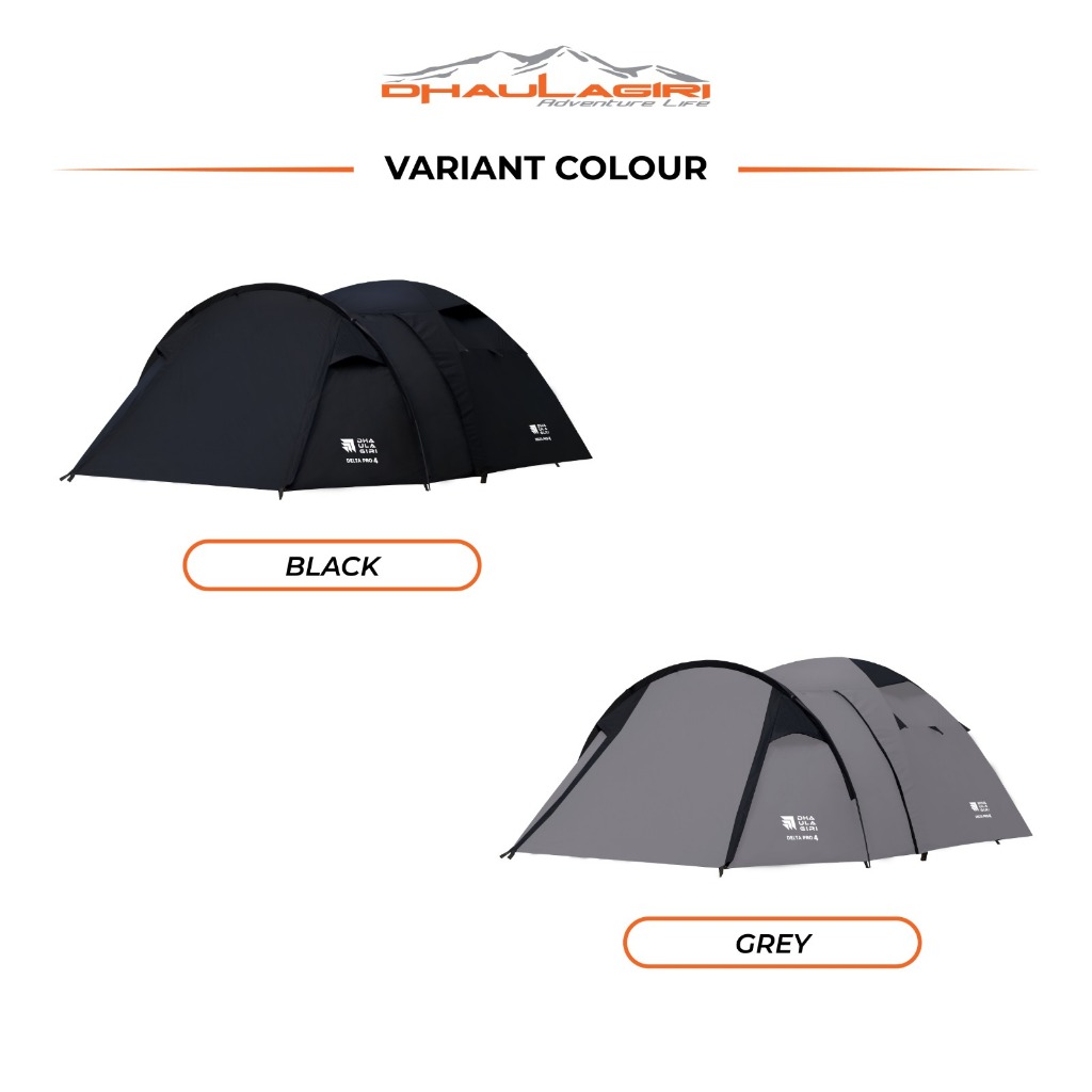 Dhaulagiri Delta Pro 4 Black & Grey Tenda Double Layer Kapasitas 4 Orang