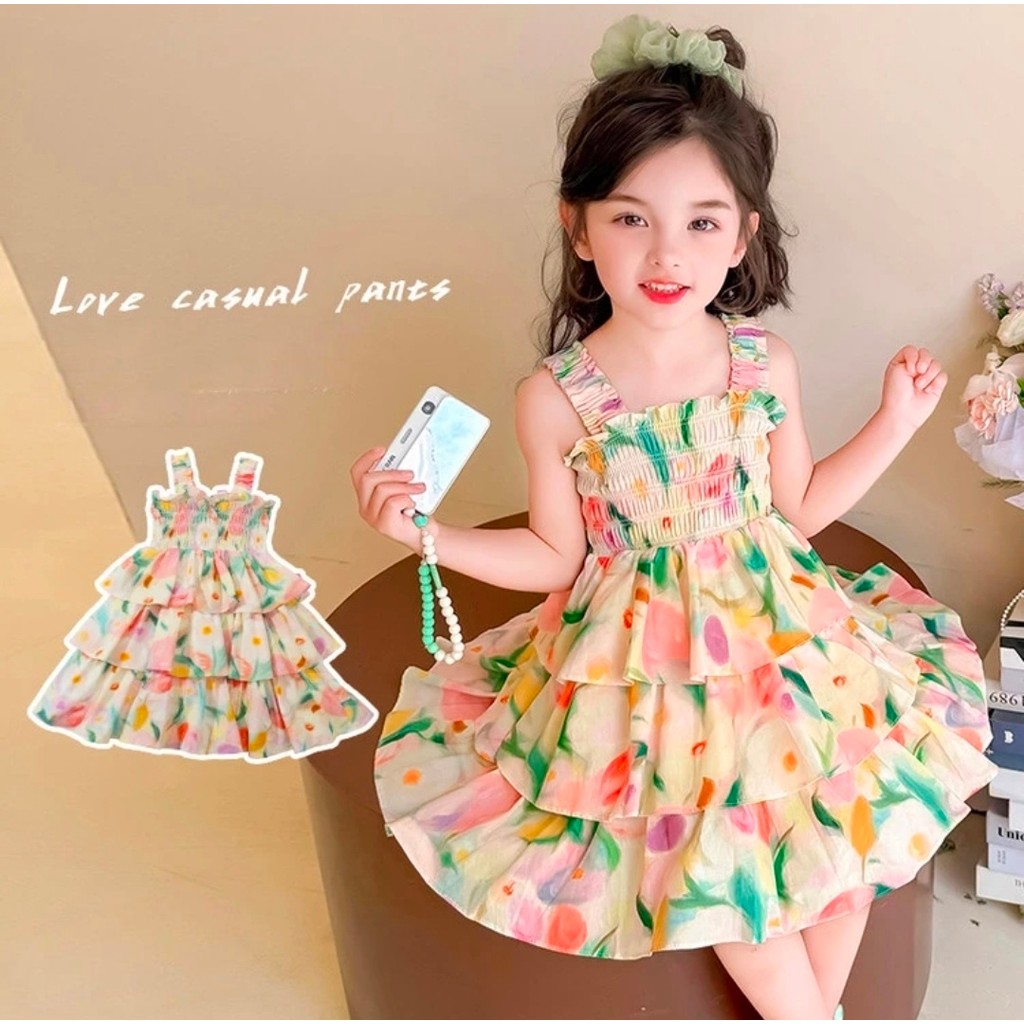 Haasya Kids 1-7 Tahun Gaun Anak Perempuan, Gaun Musim Panas, Versi Korea Baru Rok Anak Asing, Pakaian Anak Super Peri, G
