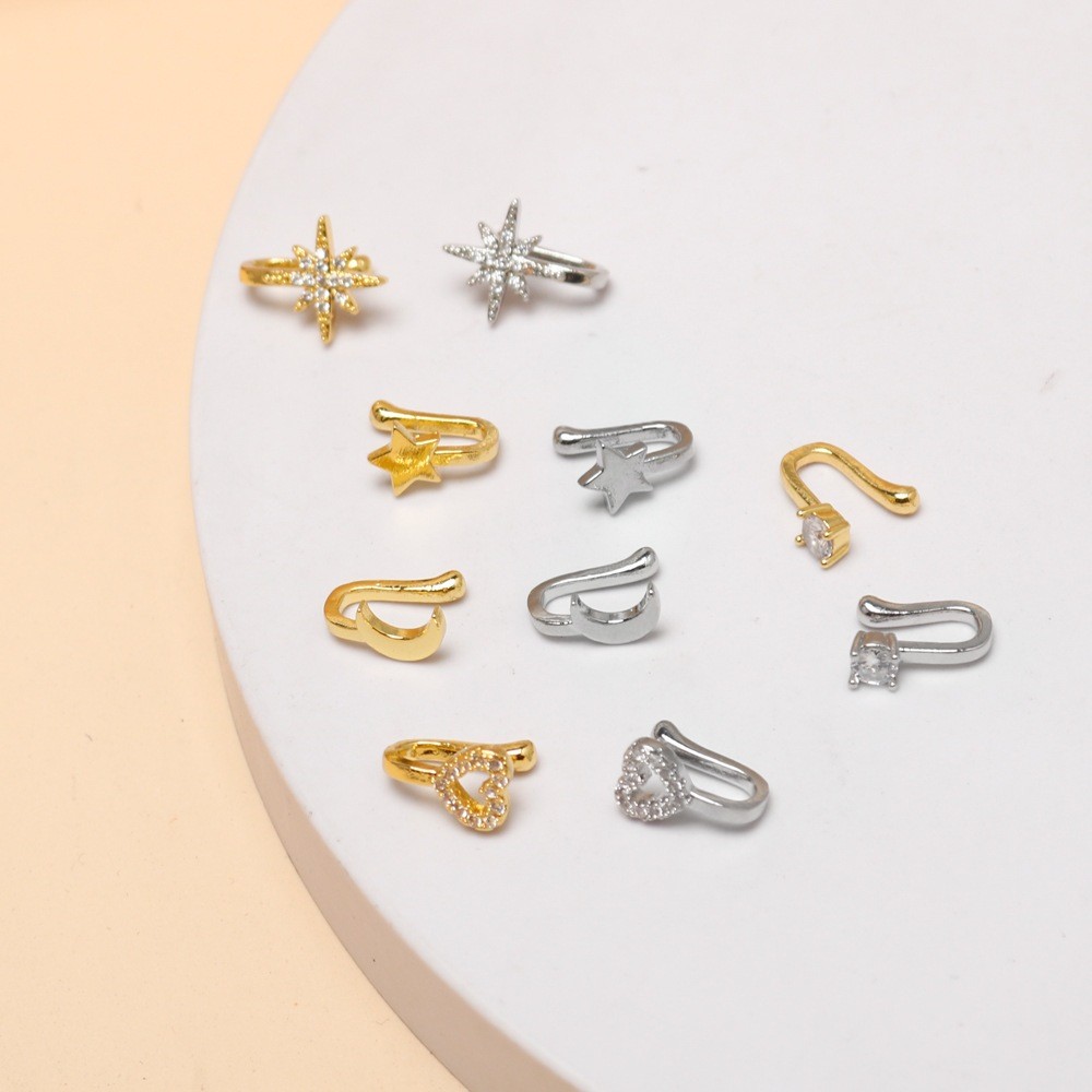 Anting Hidung Clip Tanpa Tindik Model Moon Flower Star Lucu Perhiasan Gaya Korea