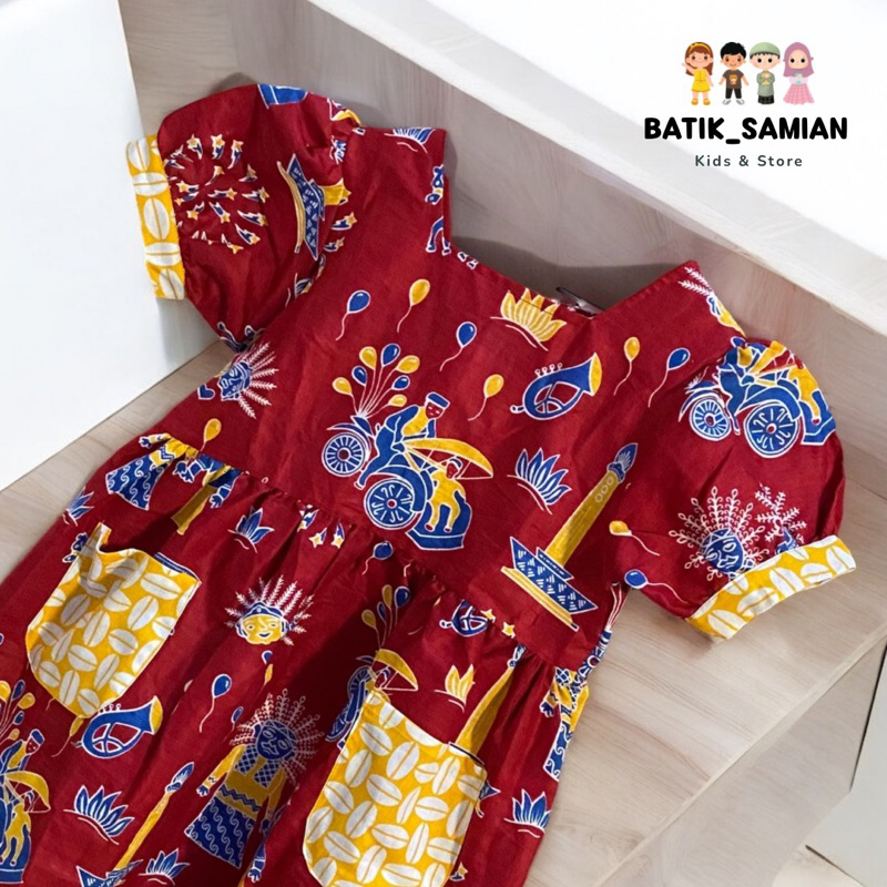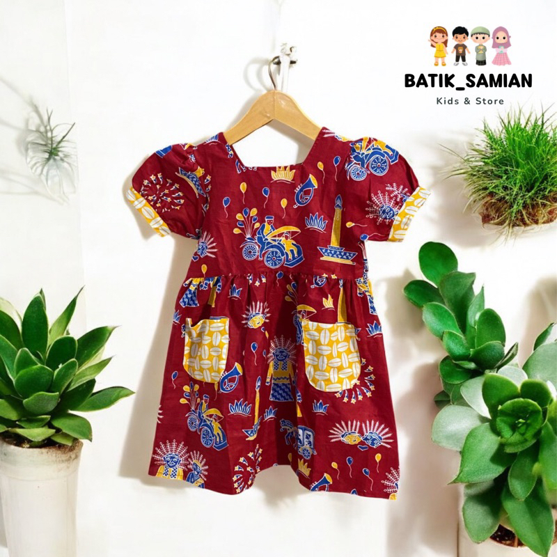 Dress Batik Anak Perempuan Motif Monas Jakarta Bahan Katun Adem Nyaman Di Pake