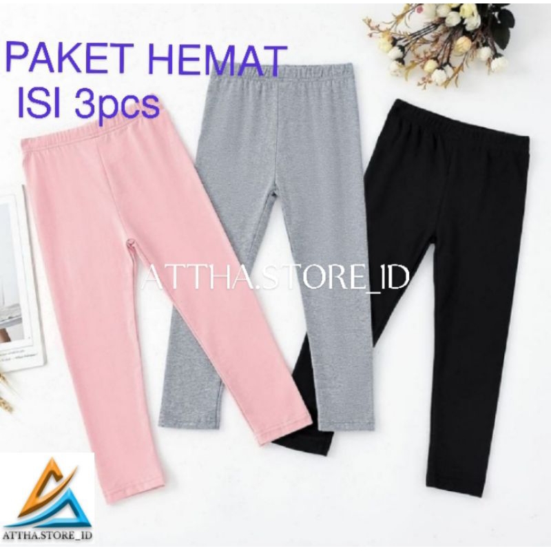 Legging Anak Perempuan Bahan Kaos Isi 3 Pcs Celana Anak Perempuan 2-15 Tahun