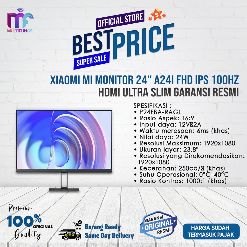 Xiaomi Mi Monitor 24" A24i FHD IPS 100Hz Ultra Slim Terjangkau